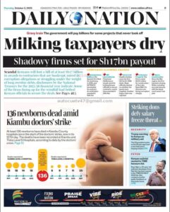 In Taifa Leo, the focus shifts to Parliament where senators have raised alarm over claims of bribery and discrimination in the upcoming police and military recruitment exercises. The intake is scheduled to run between October 3 and October 25.