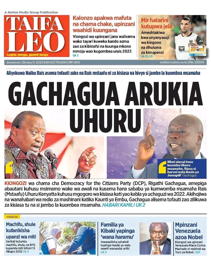 Meanwhile, the Nation portrays President Ruto as consolidating his alliances, signaling a “masterstroke” in political strategy that could neutralize the opposition’s momentum.