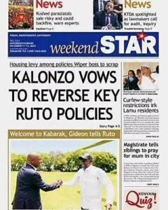 Headline: “Kalonzo vows to reverse key Ruto policies”