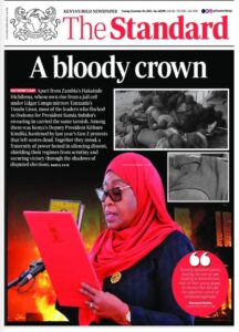 The paper paints a grim picture of regional politics as it covers the swearing-in of Tanzanian President Samia Suluhu in Dodoma. The story highlights the presence of several African leaders accused of authoritarianism, including Kenya’s Deputy President Kithure Kindiki. The article notes that Kindiki’s government has been under fire for its handling of last year’s Gen Z protests, which left many dead. In a compelling narrative, The Standard places Kindiki among a “fraternity of power” that has perfected the art of silencing dissent and winning contested elections. The full exposé runs across pages 8, 9, and 10.