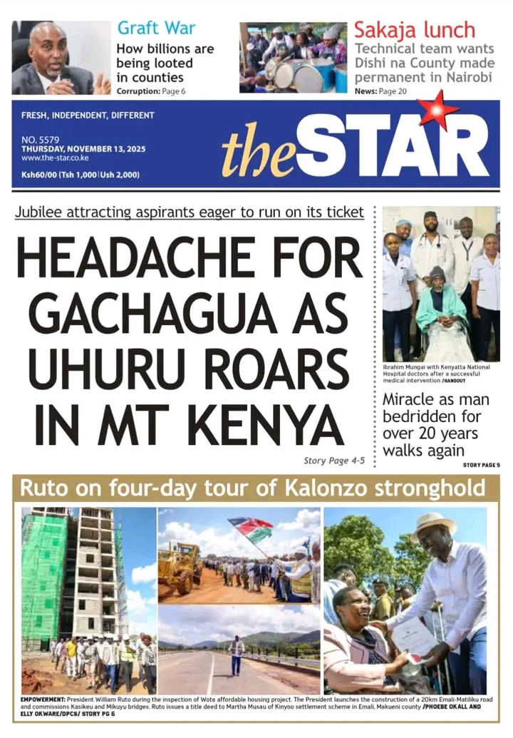 Headache For Gachagua As Uhuru Roars In MT Kenya: Newspaper Review, November 13, 2025
