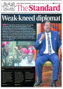 From the abduction of activists in Uganda to the brutal killing of a Kenyan teacher in Tanzania, many are accusing Mudavadi of being a “weak-kneed diplomat” who has failed to protect citizens abroad.